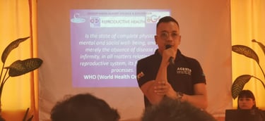 Men for violence-free community (MVFC) and Sibulan Unified Gender Advocates (SUGA) held a seminar at the Sibulan multi-purpose hall discussing the reproductive health of men and women for awareness. MVFC disseminates informative topics and issues about reproductive health like safe sex, facts about reproductive processes, and guides to where community reproductive health support and services can be accessed.